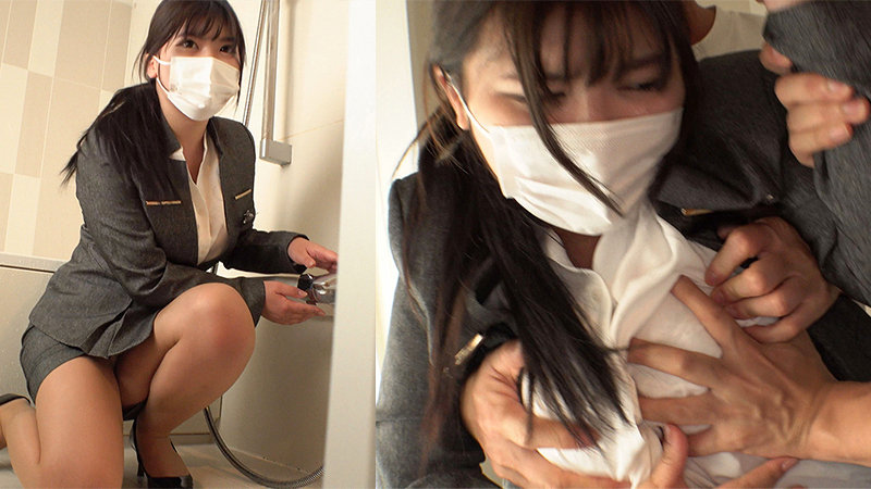 【OLレイプ】ムチムチボディにぴっちりスーツの客室係を男2人でレイプ!